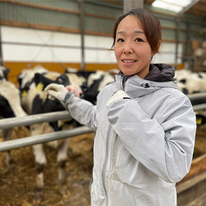 私はこれまで育成牧場や搾乳牧場で働いた経験がありますが、NS牧場で働きはじめて、こんなに牛に優しく接する牧場は今までになかったので、正直ビックリしました! しっかり休憩時間があるので、心にゆとりをもってお仕事ができるからだと思います。 牛と人間が良好な関係がとれている牧場なんだと思います。